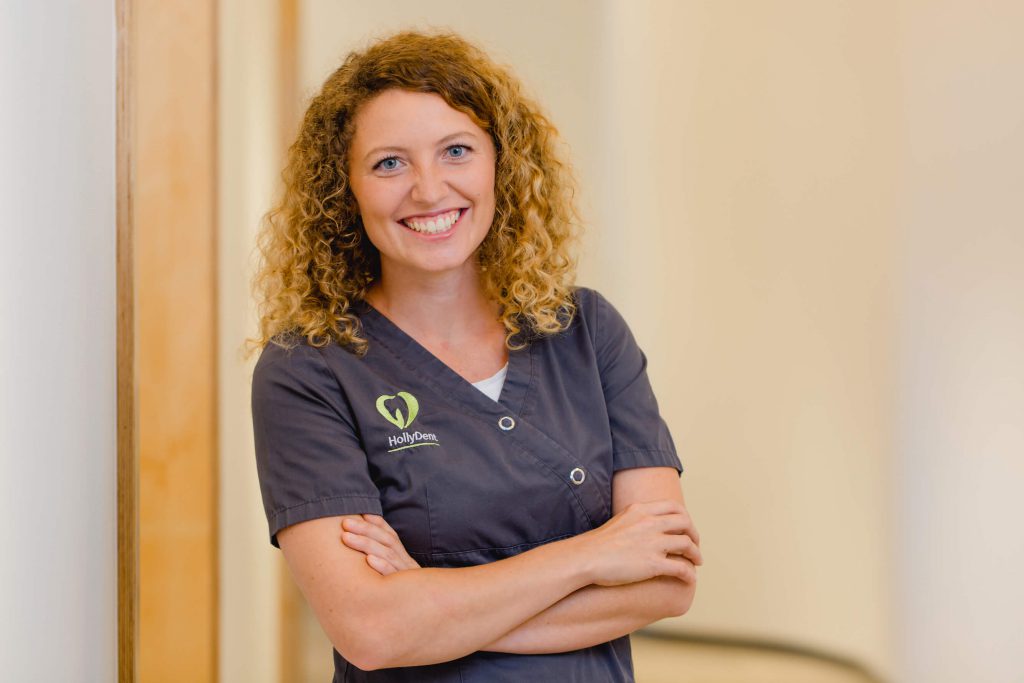 Nachdem Frau Nathalie den Hollander 2013 ihr Staatsexamen an der RWTH Aachen absolvierte, arbeitete sie zunächst von 2014-2016 als Vorbereitungsassistentin bei HollyDent. Im Anschluss daran absolvierte sie eine zweijährige Weiterbildung in der kieferorthopädischen Praxis von Dr. Jan Roehlike in Gummersbach. 2018 kehrte sie zu HollyDent zurück und stieg 2019 gemeinsam mit Frau Dr. Renate Batke als Juniorpartnerin in die Gemeinschaftspraxis ein. Ihr Behandlungsschwerpunkt liegt im Bereich der Kieferorthopädie. Durch viele Fortbildungen hat sich Frau den Hollander vor allem im Bereich der Aligner-Therapie (durchsichtige Zahnschienen) spezialisiert und bietet für Kinder und Erwachsene Kieferorthopädie auf höchstem Niveau an.