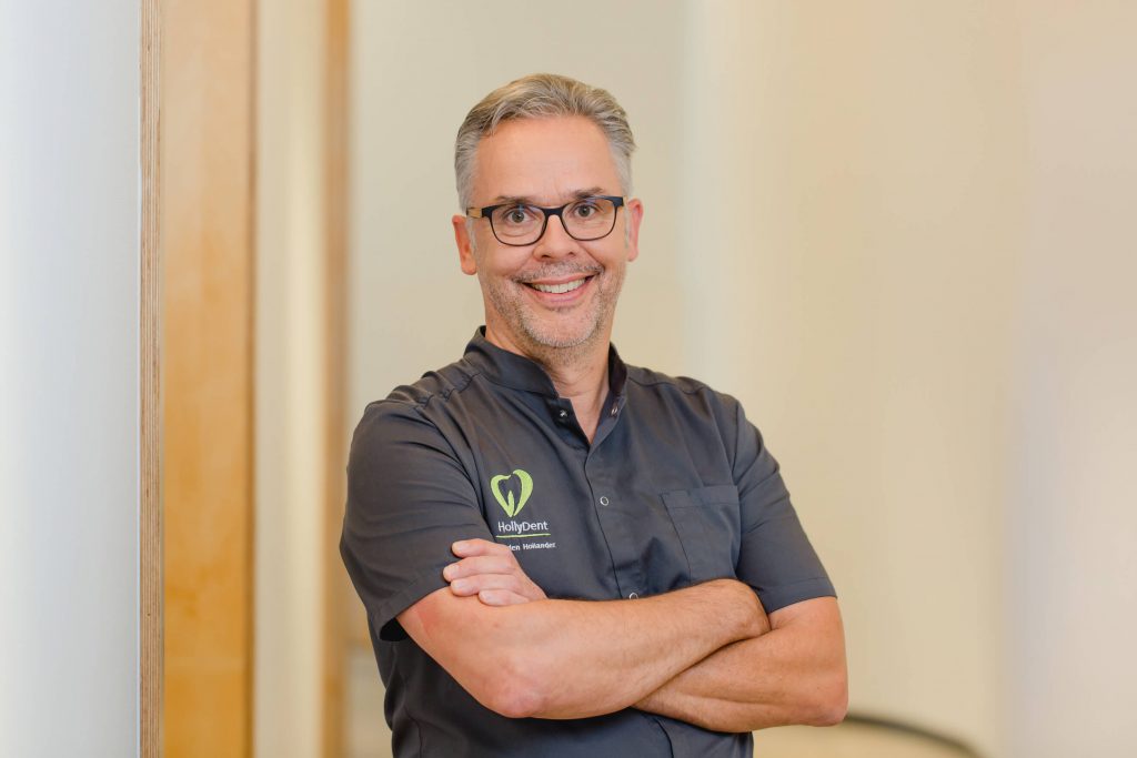 Sein Zahnmedizinstudium absolvierte Herr drs. den Hollander von 1980-1985 in der niederländischen Stadt Utrecht und zog nach 18 Monaten zahnmedizinischen Einsatzes beim niederländischen Militär mit seiner Familie nach Deutschland. Während seiner Assistenzzeit arbeitete er in Düsseldorf und gründete 1988 mit seiner Frau Gerda den Hollander seine eigene Praxis in Waldbröl. Auf vielen Fortbildungen zum Thema Chirurgie, Implantologie und Prothetik konnte sich Herr drs. den Hollander ein umfassendes Wissen aneignen und sich im Laufe seiner 30-jährigen beruflichen Tätigkeit zu einem wahren Spezialisten entwickeln. Der Erfolg gab ihm Recht: die Zahnarztpraxis HollyDent wurde in neuen größeren Räumen 2014 eröffnet.